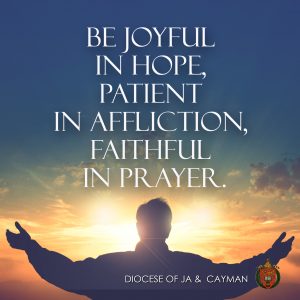 Our lives must be lives of joy and hope, we must bear our personal afflictions whether they be financial, emotional or physical patiently and show that although our lives are not devoid of suffering or adversity we know a God that upholds us and whose power to sustain and transform is immeasurable. This God is accessible to all through prayer and we can have the conversations that we need to have with him through regular, ongoing prayer. I chose the word conversation because just as we expect God to listen to what we say we have to be still and receive his words unto our hearts for contemplation and action. It is so easy to be swept away by the pressures of life, and then run out of time to pray or, worse yet, forget to pray. We need to enter service as disciples undergirded by the strength of God and filled with the grace of the Holy Spirit.