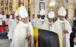 Bishops of the Church in the Province of the West Indies carry the casket with the remains of the late Bishop of Jamaica, The Rt. Rev. the Hon. Dr. Neville deSouza to its final resting place. Bishop deSouza was buried yesterday (December 29) in the St. Andrew Parish Church Cemetery following a Mass of the Resurrection at which the Archbishop of the West Indies, the Most Rev. Dr. and the Hon. John Holder, presided.