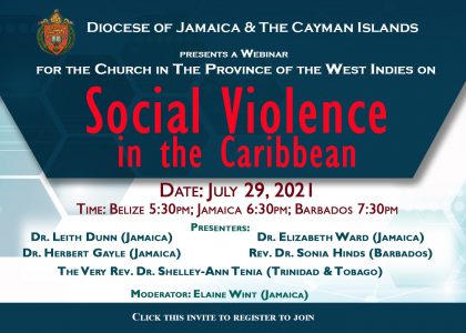 Social Violence in the Caribbean will be the focus of a Webinar to be hosted this evening, July 29, by The Diocese of Jamaica & The Cayman Islands for the Church in the Province of The West Indies. The Webinar, which will begin at 6.30 pm in Jamaica, 5.30 pm in Belize, and 7.30 pm…