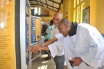 Lord Bishop, the Rt. Rev. Howard Gregory, and UTCWI student Dwane Blackwood view the Exhibition.
